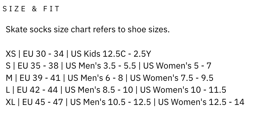 XS, S, M, L, XL